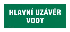 Tabulka - HLAVNÍ UZÁVĚR VODY 210 x 87 mm, samolepicí. rozměry: 210 x 87 mm Samolepicí bezpečnostní tabulka, jejímž účelem je opatření a snížení rizik.