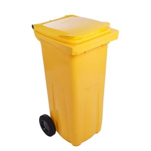 Popelnice plastová Určena pro běžný sběr komunálního a průmyslového odpadu Barva: černá Opatřena kolečky pro snadnou manipulaci Objemu 120 l Rozměry: š=480mm, v=950mm, h=540mm