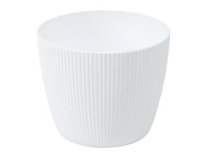 Plastový, matný obal na květináč v oblíbeném dekoru svislých pruhů, které připomínají pletený svetr.