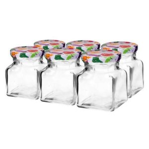 Sklenice s barevným víčkem - mix barev, víčko součástí balení. objem: 155 ml balení: 6 ks Ideální pro skladování potravin.