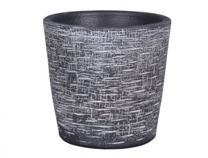 Matný plastový obal na květník s jemnými vlnkami po celém obvodu.