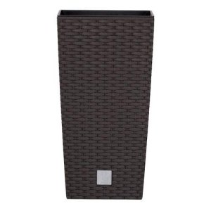 Plastový matný tmavě hnědý jemně kónický obal pro květináč s rostlinami.