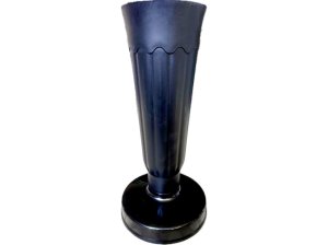 Plastová černá lesklá hřbitovní váza s kulatou těžkou základnou.