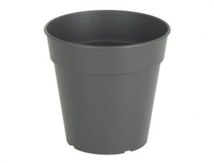 Tenkostěnný pevný plastový květník klasického tvaru.