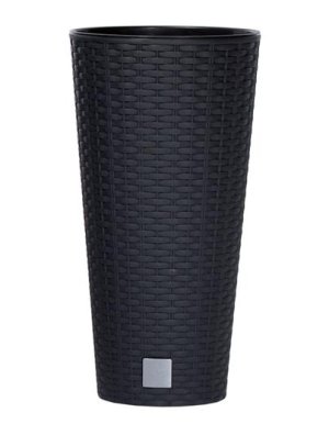 Květináč s plastovou vložkou, objem 15,5 l, design se zajímavou texturou, vhodný do exteriéru i interiéru, odolný vůči UV záření.