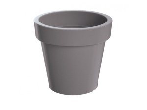 Tenkostěnný pevný plastový květník klasického tvaru.
