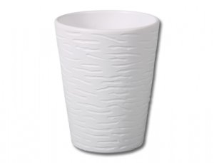 Keramický obal na květník se strukturovaným povrchem, připomínající kůru stromů.