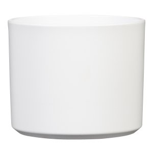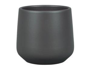 Matný keramický obal na květník s hrubším pískovaným povrchem.