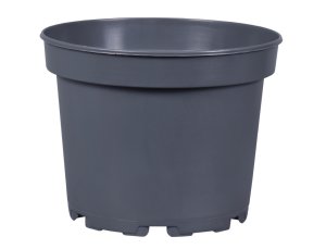 Plastový květináč, hladký, matný, vyrobený z recyklovaného plastu (100%).