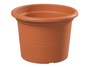 Plastový, matný, hladký květník s linií pod horním okrajem.