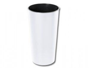 Vysoký lesklý plastový obal na květník s vnitřní vložkou.