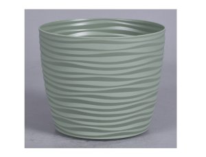 Matný plastový obal na květník s jemnými vlnkami po celém obvodu.