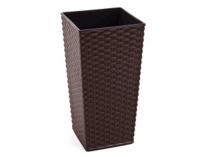 Plastový samozavlažovací obal na květník vyrobený z recyklovaného plastu.