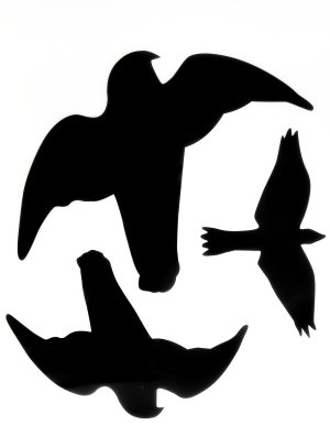 Siluety jako samolepky na okna a jiné hladké povrchy lze využít k plašení a ochraně ptáků proti narážení do oken a podobných ploch.