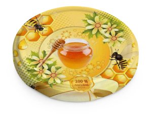 Šroubovací víčka průměru 82 mm na sklenice 0.7 litru s dekorem med.