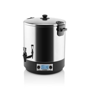 Zavařovací hrnec s objemem 25 litrů a praktickým výpustným kohoutem, časovač na 1-180 minut, termostat v rozmezí 30 °C do 100 °C