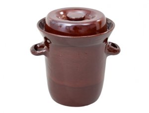 Keramický glazovaný hnědý lesklý 23l zelák s víkem.