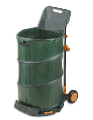 Koš na listí je snadno přenosný, s praktickým skládacím mechanismem pro úsporu místa.