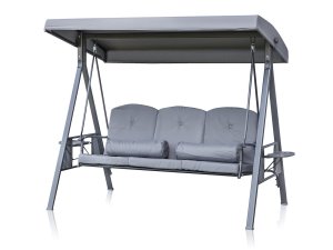 Zahradní houpačka RUJANA má vysoce stabilní masivní kovovou konstrukci, ošetřenou práškovým lakováním a 3 samostatné sedáky z polyesteru o síle cca 8 cm, které zajišťují komfortní posezení.