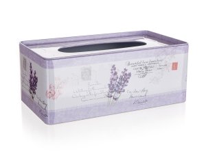 Krabička na papírové kapesníky plechová LAVENDER 24 x 13 x 9,5 cm, se díky svému designu hodí do každého interiéru.