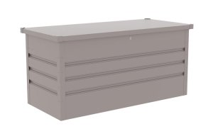 Bezúdržbový uzamykatelný zahradní box z pozinkované oceli bezpečně ochrání uložené zahradní nářadí i vybavení.