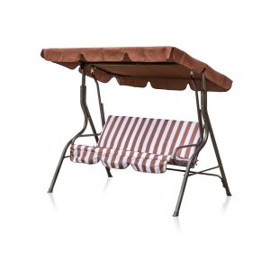 Zahradní houpačka STRIPY II má kovovou konstrukci ošetřenou práškovým lakováním v zelené barvě, sedák polyester ( rozměry: výška 6 cm ).