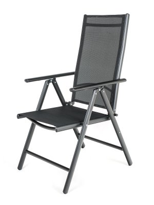 Zahradní židle s klasickou skládací konstrukcí, opěrky na ruce, sítěný materiál uchycený k rámu pomocí gumiček, pohodlí i v horkých letních dnech, nosnost až 110 kg.