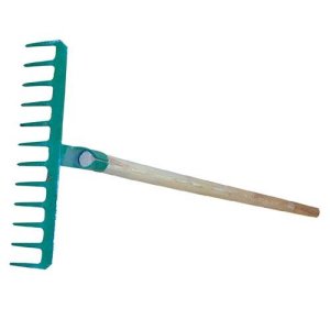 Kvalitní kované zahradní hrábě se 16 zuby na dřevěnou násadu.