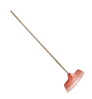 Plastové švédské hrábě s 21 hroty. S násadou dlouhou 160 cm.