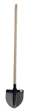 Ocelová špičatá lopata s násadou vhodná pro práci na zahradě nebo na stavbě.