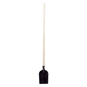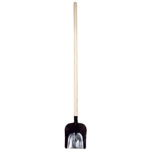 Černá hranatá lopata vyrobená z oceli s násadou 130 cm.