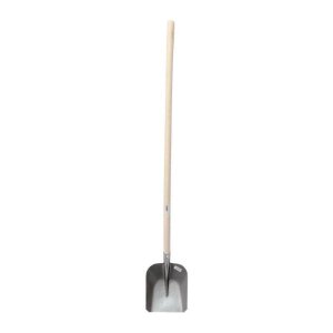 Ocelová lopata s násadou vhodná pro práci na zahradě nebo na stavbě.