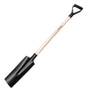 Rýč na hloubení úzkých výkopů dlouhý 52 cm s dřevěnou T násadou.