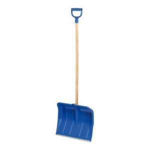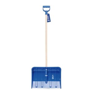 shrnovač sněhu s násadou - rozložený vyroben z odolného PP materiálu do -30°C ALU břit dřevěná násada plastová ručka
