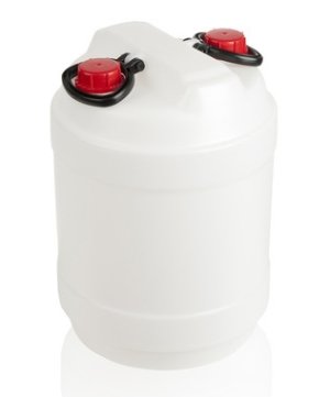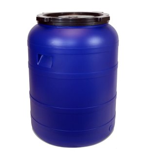 Plastová širokohrdlá konev (sud) se šroubovacím víkem o objemu 30 litrů.