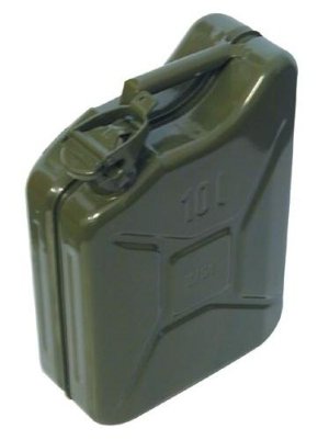 Plechový kanystr zelené barvy RAL6003 na pohonné hmoty a těkavé látky.
