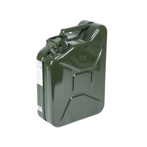 Plechový kanystr zelené barvy RAL6003 na pohonné hmoty a těkavé látky.
