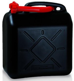 Plastový kanystr s nalévací hubicí určený pro pohonné hmoty - pro benzín i pro naftu.
