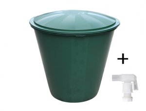Pevný barel se šroubovacím víkem o průměru 55 cm, výška 80 cm.