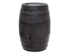 Plastový barel s imitací dřeva jako na dřevěném sudu.