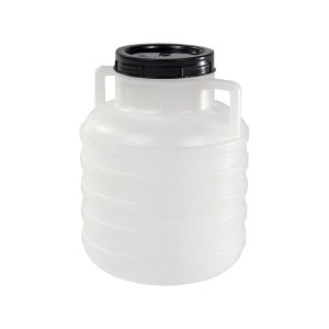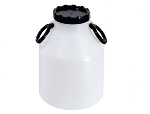 Plastová širokohrdlá konev (sud) se šroubovacím víkem o objemu 10 litrů.