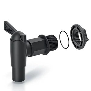 Kohoutek pro sud na dešťovou vodu, snadnější nalévání vody do konve, kýble nebo do vědra, praktická páčka, vyrobeno z plastu, rozměry (d x š x v): 15 x 4 x 16 cm, barva černá.