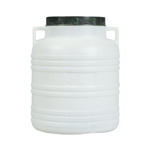 Plastová širokohrdlá konev (sud) se šroubovacím víkem o objemu 30 litrů.