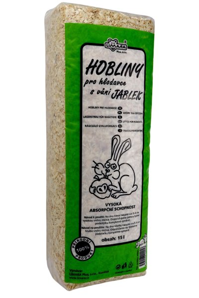 Popis. Hobliny z přírodního dřeva s vůní jablek.Vysoká absropční schopnosti. Je vhodná pro drobné hlodavce.