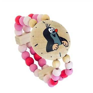 Dívčí dřevěné hodinky s obrázkem krtečka. Navlečeno na jemné gumičce. Nevhodné pro děti do 3 let. Obsahuje malé části. Výrobek je zdravotně nezávadný.
