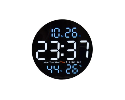 LED displej s velkými a jasnými číslicemi usnadňují čtení času na dálku. Hodiny zobrazují datum (den a měsíc), den v týdnu (ENG), teplotu, vlhkost, mají dva budíky. Snadná montáž - montážní otvor na zadní straně umožňuje připevnění na zeď. Pohodlná úprava nastavení hodin pomocí dálkového ovládání. Ideální pro domácnost, kuchyň, obývací pokoj, ložnici, kancelář, učebnu a další místa. K napájení hodin slouží USB kabel o délce 2 m. Hodiny mají paměťovou funkci, která uloží Vaše nastavení pro případ výpadku proudu. Možno připojit kabelem do počítače, přes zástrčku DC 5 V, 1 A do sítě nebo do jiného zařízení s portem USB. Dálkové ovládání funguje na baterii CR2025 (obsažena v balení).