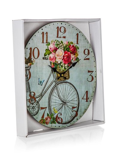 Nástěnné kulaté hodiny BICYCLE, s celoplošným dekorem, jsou skvělý pomocník do domácnosti, ale slouží také jako dekorace interiéru. Hodinový strojek je napájen jedním kusem baterie AA (není součastí balení). V nabídce další dekory.
