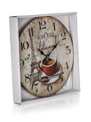 Nástěnné kulaté hodiny CAFE PARIS, s celoplošným dekorem, jsou skvělý pomocník do domácnosti, ale slouží také jako dekorace interiéru. Hodinový strojek je napájen jedním kusem baterie AA (není součastí balení). V nabídce další dekory.