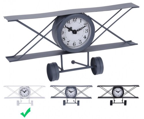 Stolní hodiny v kovovém provedení - povedený retro design letadla - napájení pouze na 1 tužkovou aa baterii (není součástí) - rozměry: 30 x 15 x 8 cm - barva: bílá konstrukce / bílý ciferník