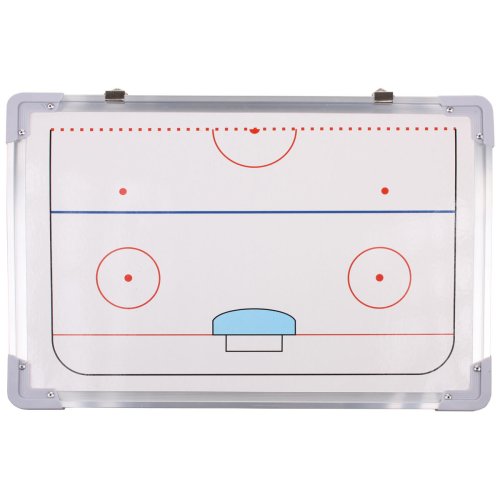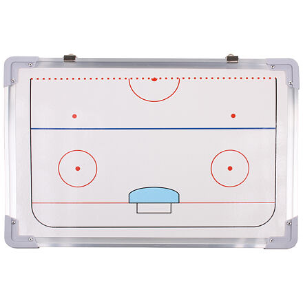 Trenérská tabule na hokej je nezbytný doplněk každého hokejového trenéra napříč všemi soutěžemi. Taktická hokejová tabule Merco HOKEJ 43 je oboustranná magnetická deska s barevným provedením poloviny z jedné strany a z druhé strany celého hokejového hřiště v hliníkovém rámu. Součástí hokejové tabule Merco HOKEJ 43 je 6+6 barevně rozlišených magnetů, samolepky s čísly a černý popisovač jehož součástí je i malá houbička. Závěsná trenérská tabule Merco HOKEJ 43 je ideální pomocník pro taktické porady v hokejové šatně. Celkový rozměr této tabule je 45,5 x 30,5 cm a celková hmotnost 650 g.
